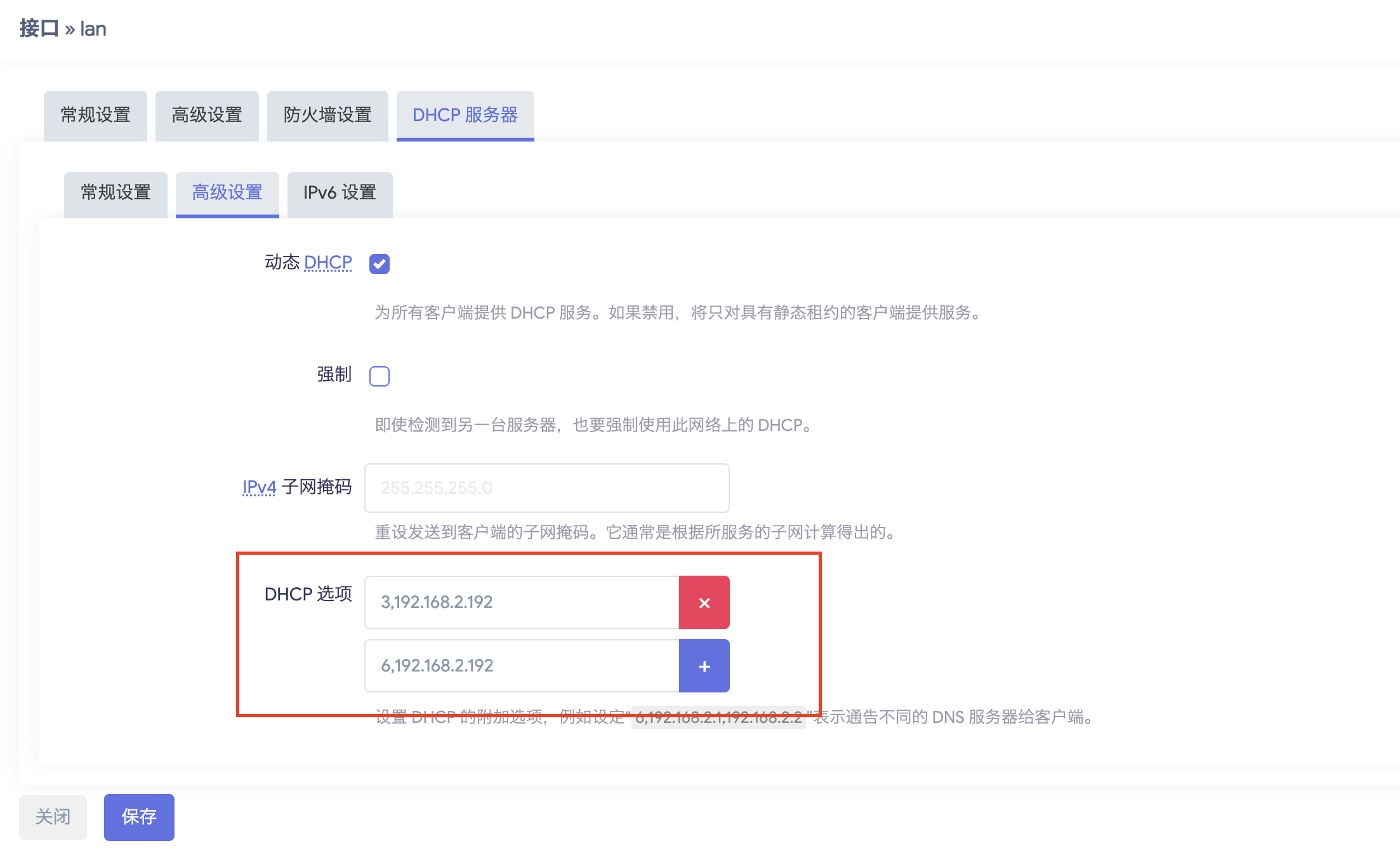 6代表下发的DNS,3代表下发的网关